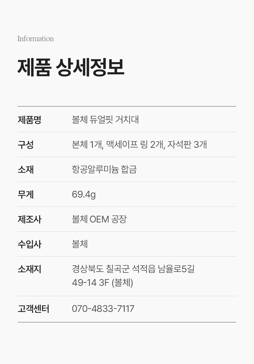 | 1. 품명 및 모델명 | 볼체 듀얼핏 거치대 / BC-DFH-01 |