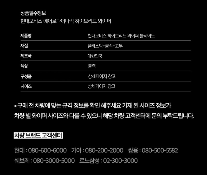 | 1. 품명 및 모델명 | 현대모비스 하이브리드 와이퍼 블레이드 |