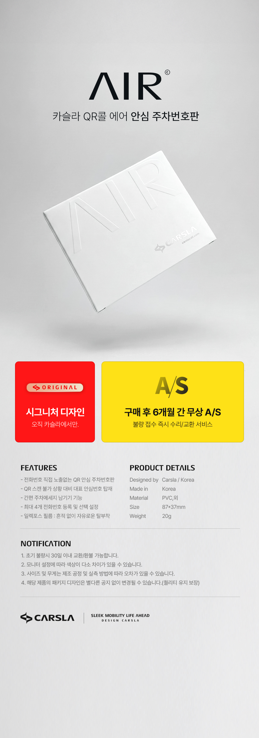 | 1. 품명 및 모델명 | 카슬라 QR콜 QR코드 주차번호판 에어 |