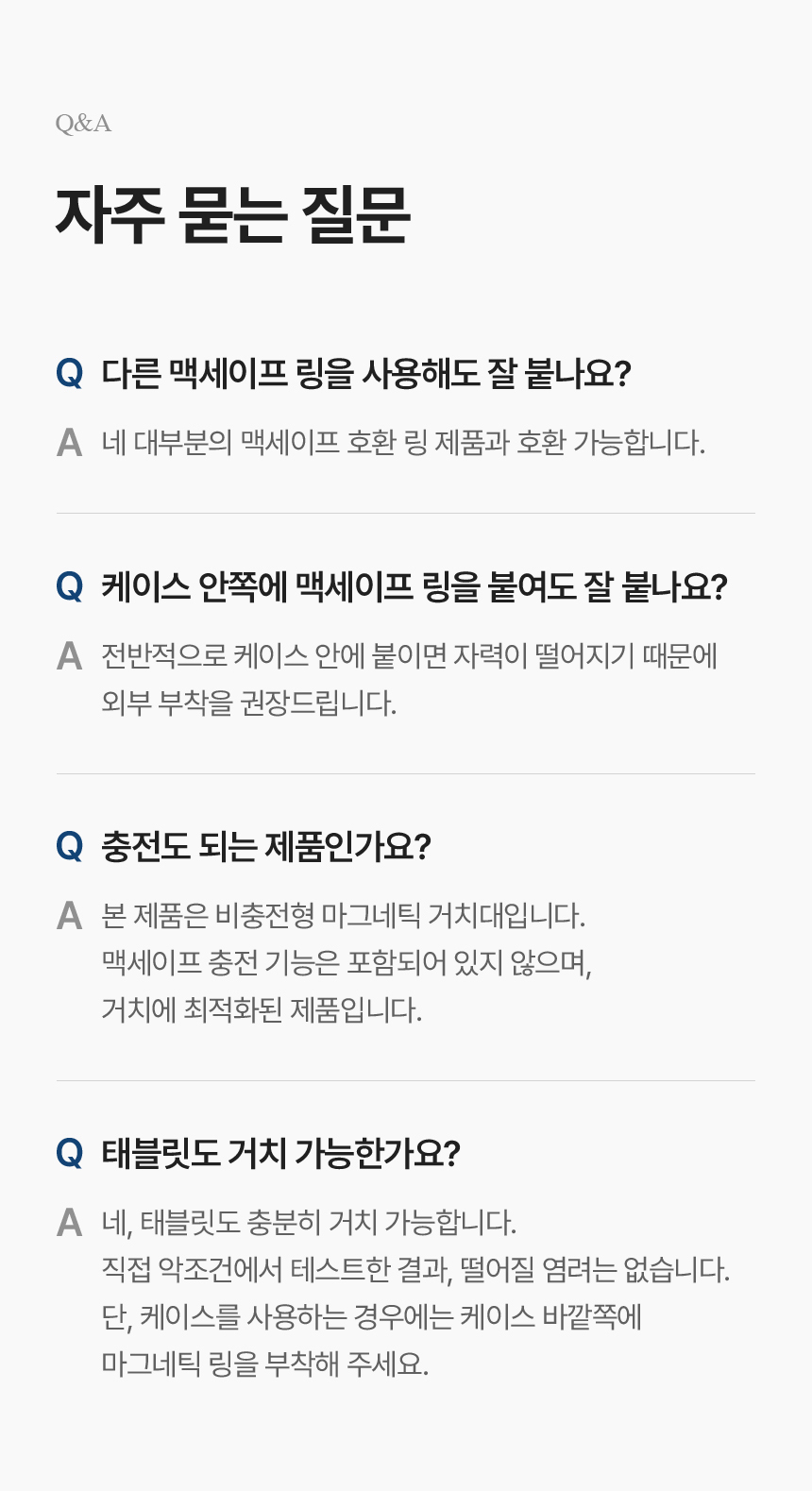 흡착 패드, 접착 패드, 맥세이프 링 등 1회 사용 후 접착력이 저하되는 구성품을 사용한 경우