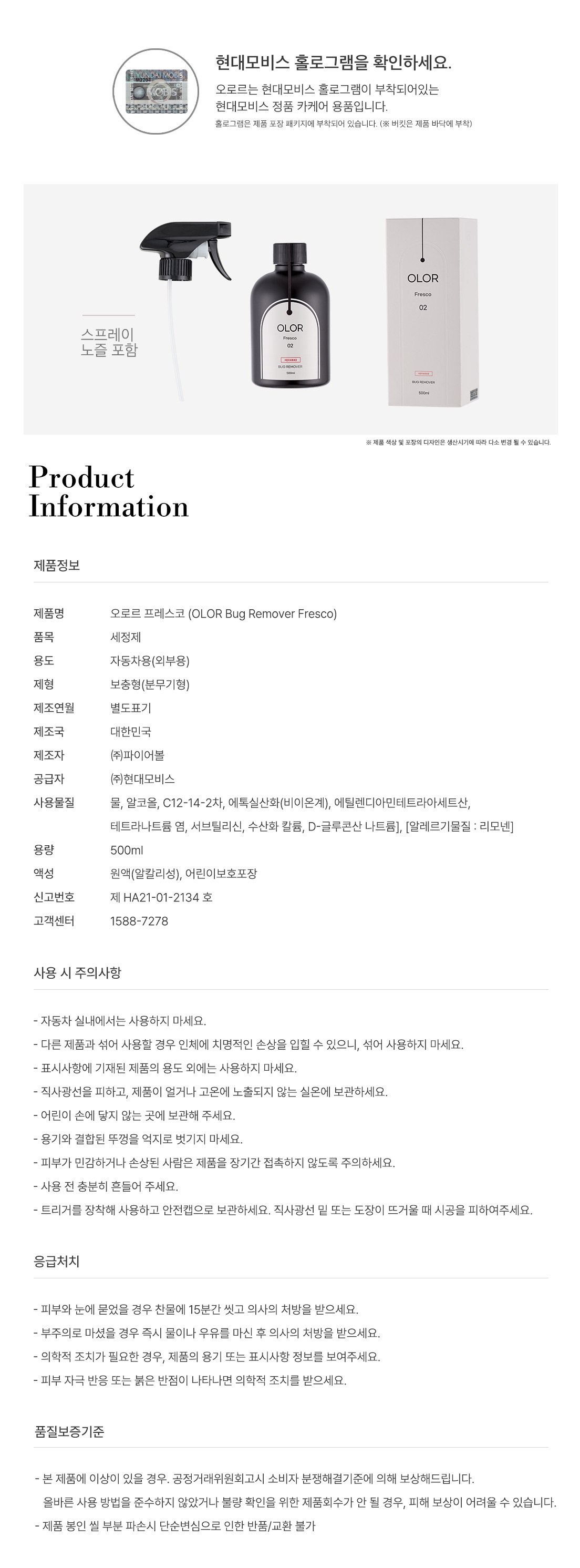 | 1. 품명 및 모델명 | 오로르 프레스코(버그리무버) |