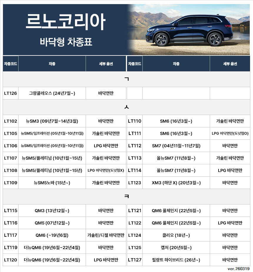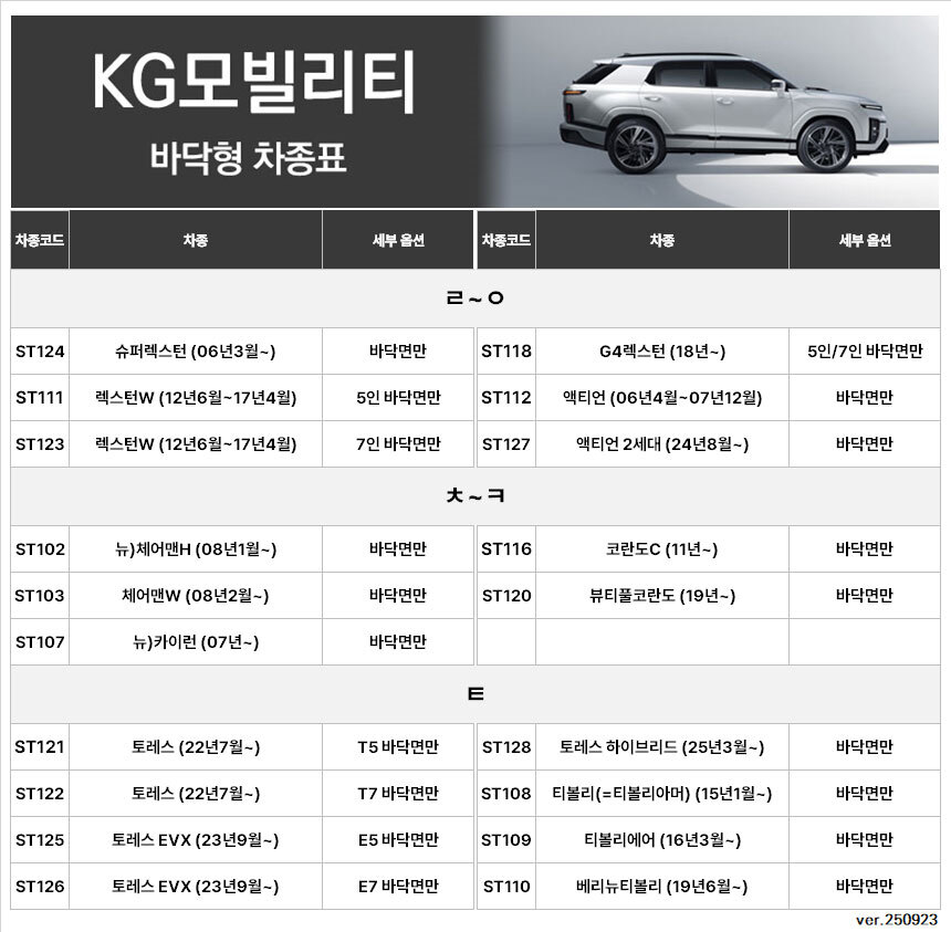 | 7. 적용차종 | 제네시스,현대,기아,르노,쉐보레,KGM |