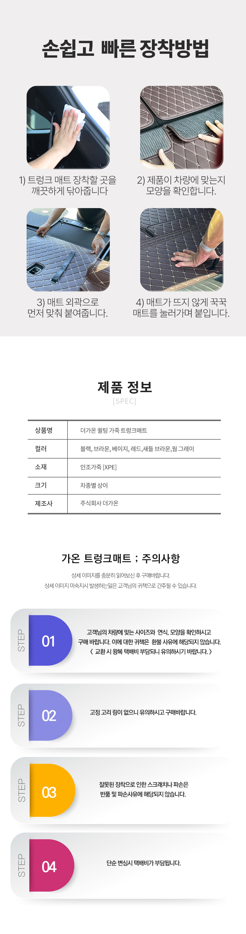 | 1. 품명 및 모델명 | 가온 자동차 트렁크매트 가죽 고급 퀼팅 바닥면만 |