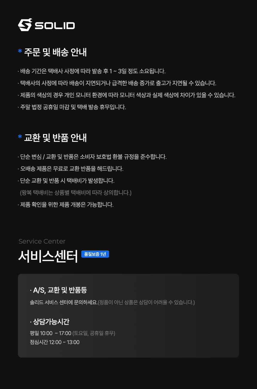 | 9. 품질보증기준 | 소비자분쟁해결기준(공정거래위원회 고시) 및 관계법령에 따릅니다. |