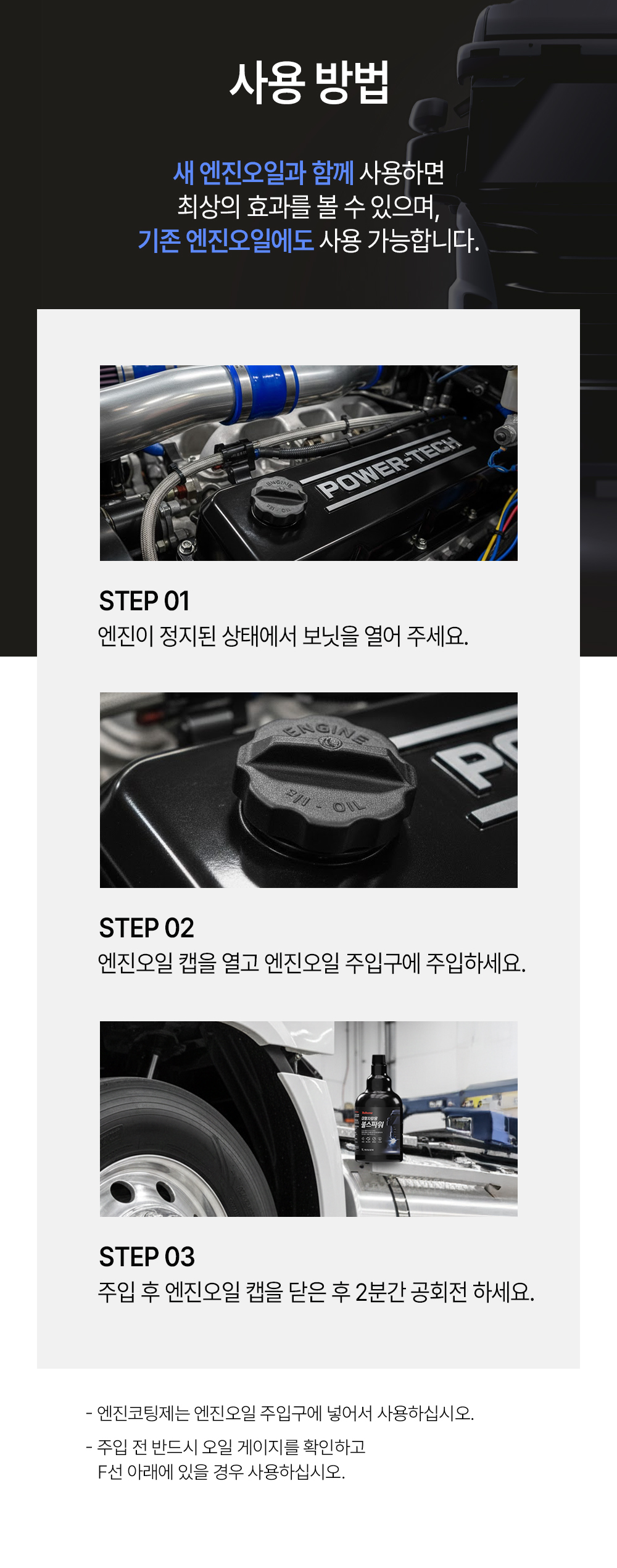 | 6. 크기 | 1L( 엔진오일 20L 기준 1병(1L) 첨가) |