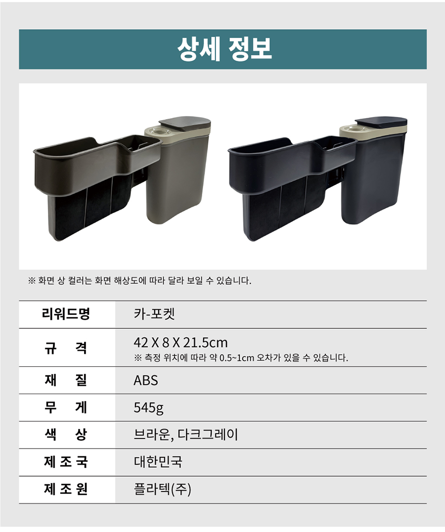 | 1. 품명 및 모델명 | 카포켓세트 차량용 사이드 수납함+쓰레기통 |