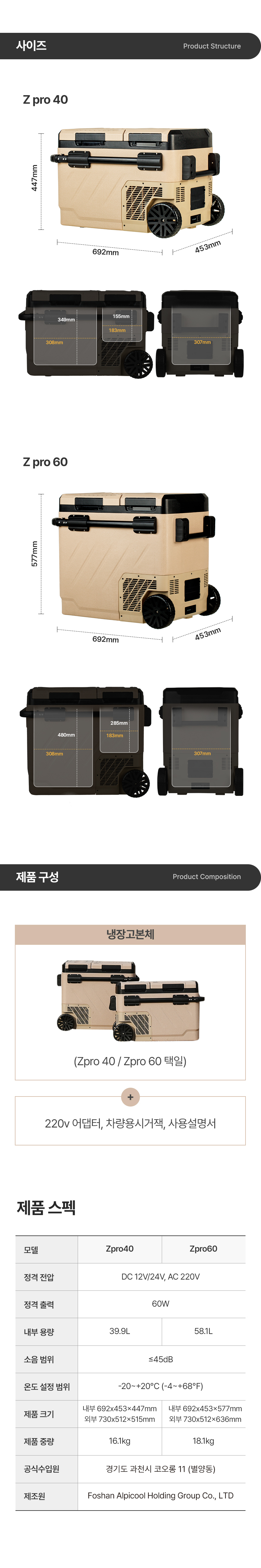 | 6. 제조자, 수입품의 경우 수입자를 함께 표기 (병행수입의 경우 병행수입 여부로 대체 가능) | Foshan Alpicool Holding Group Co., Ltd. / (주)코오롱글로벌 |