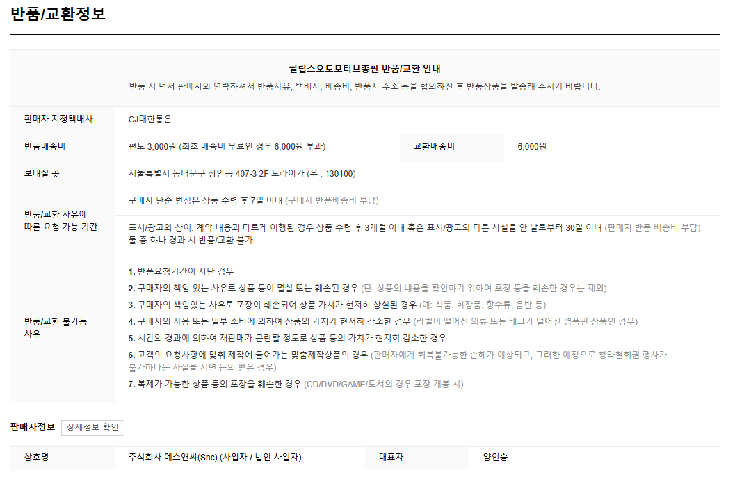 1. 품명 및 모델명 필립스 LED 전조등 H7
