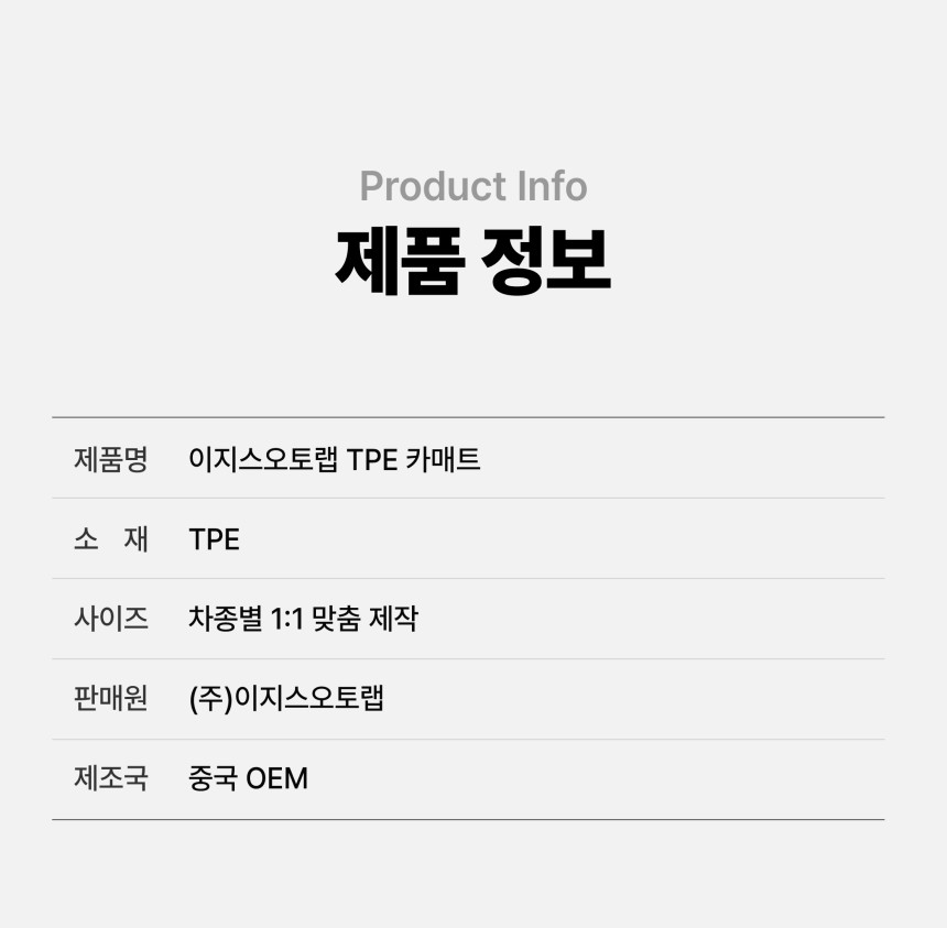 | 1. 품명 및 모델명 | TPE카매트+보조라이너 |