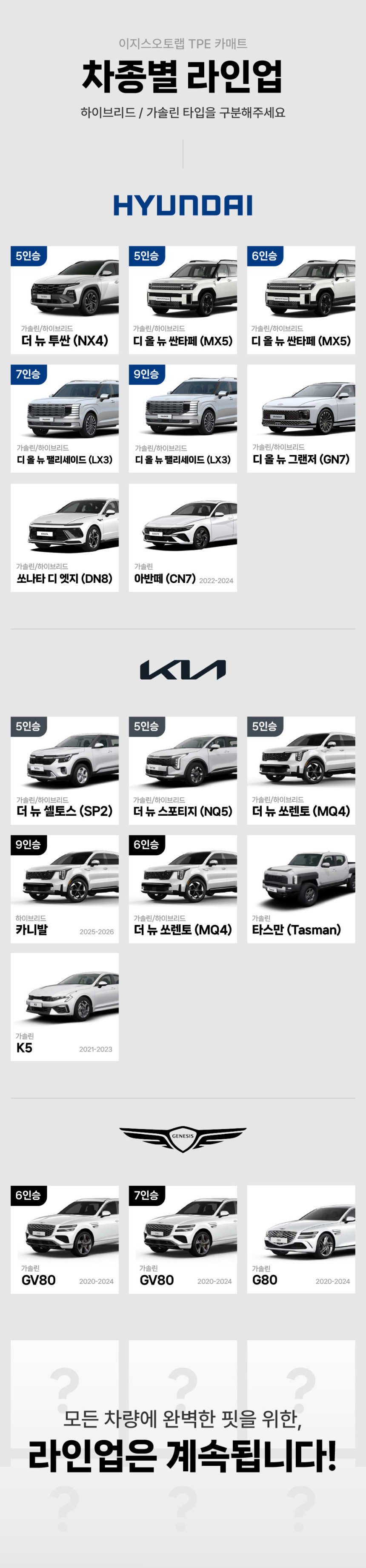 더뉴쏘렌토 MQ4, K5, 카니발, 타스만