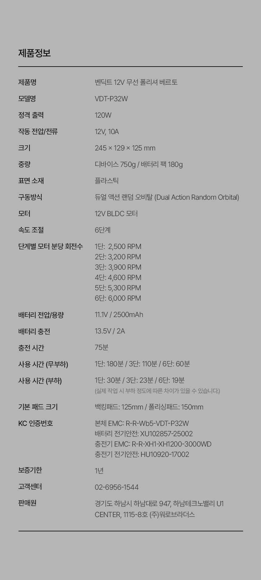 | 1. 품명 및 모델명 | 벤딕트 베르토 폴리셔 |