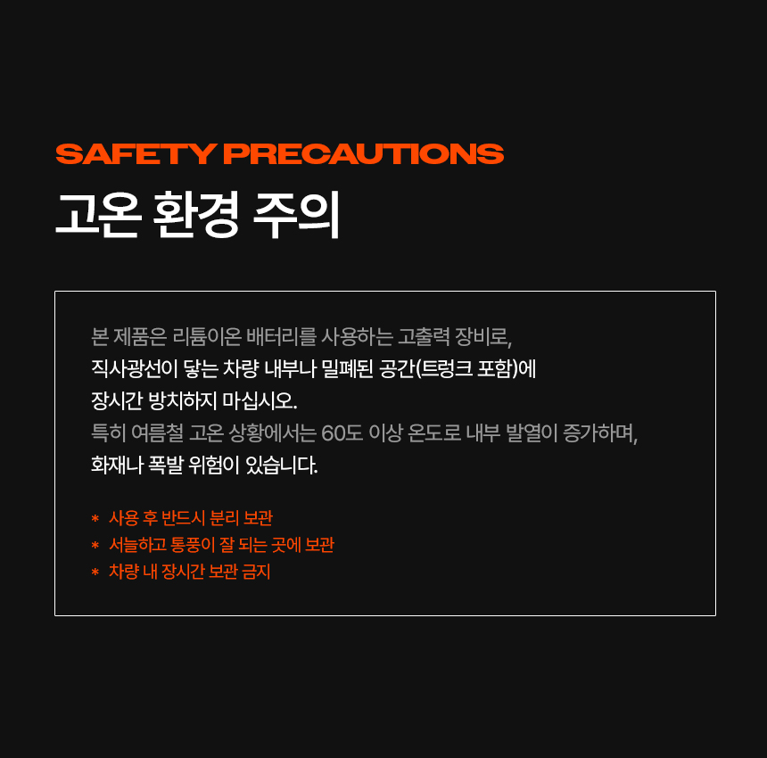 | 8. 제품사용으로 인한 위험 및 유의사항(연료절감장치에 한함) | 해당사항 없음 |