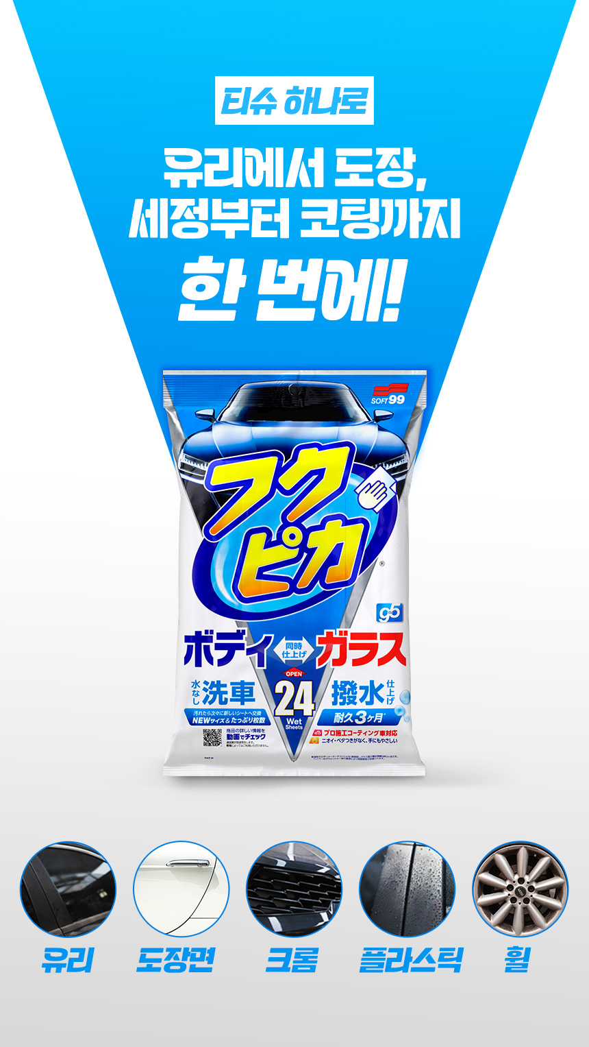 | 1. 품명 및 모델명 | 소프트99 후쿠피카 워시앤왁스 자동차 세차티슈 세정 광택 코팅 |