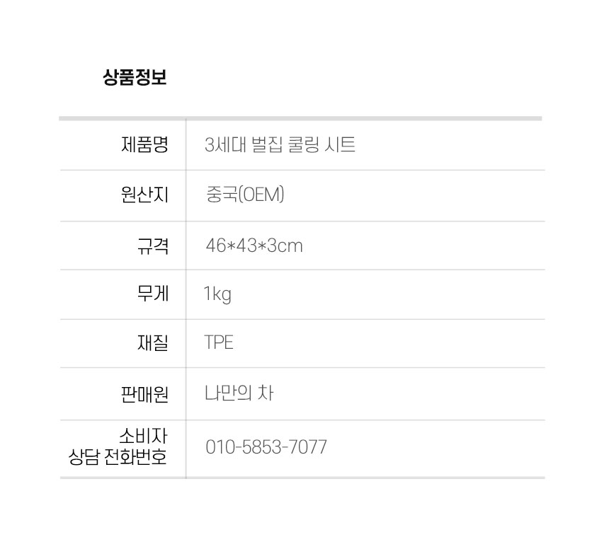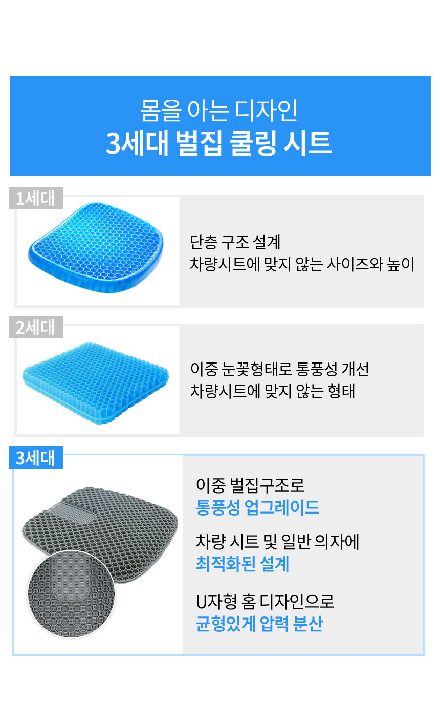 | 1. 품명 및 모델명 | 3세대 벌집 쿨링 통풍 쿠션 |