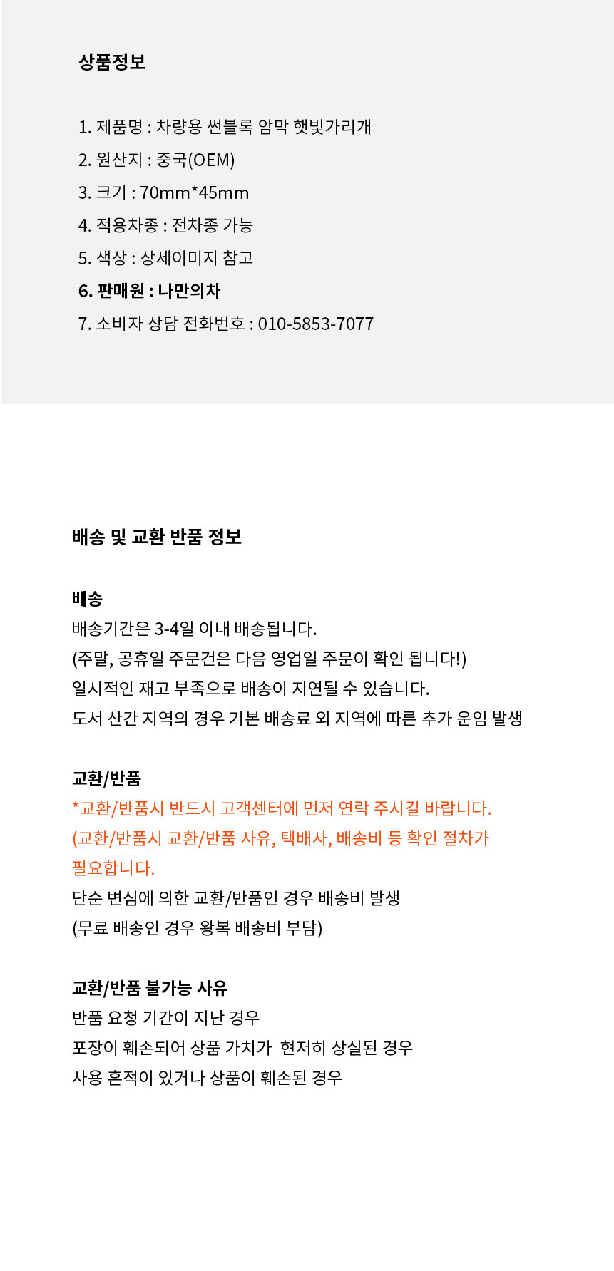 | 4. 제조자, 수입품의 경우 수입자를 함께 표기 (병행수입의 경우 병행수입 여부로 대체 가능) | 수입자 나만의차 |