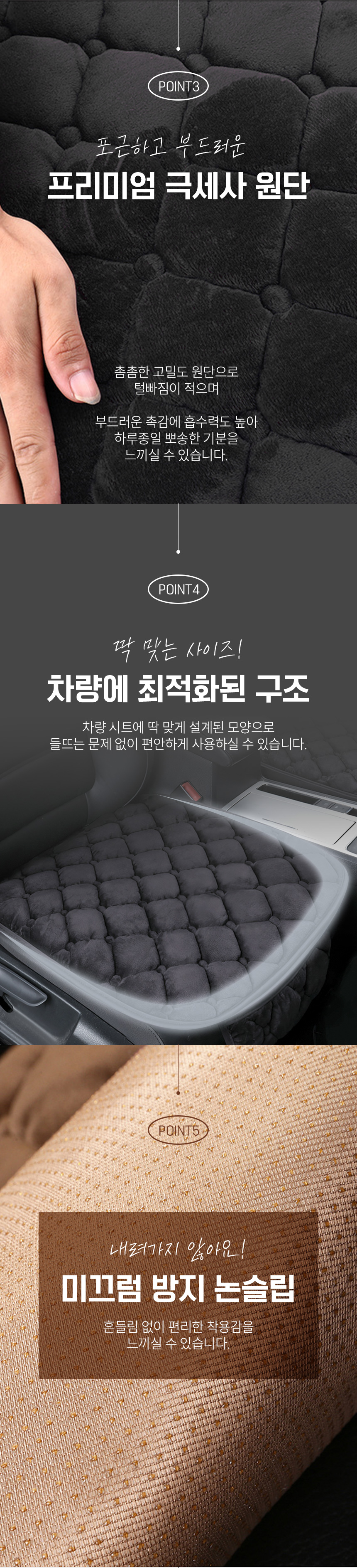 | 6. 크기 | 운전석/조수석 : 51*62 뒷좌석 : 130*61 |