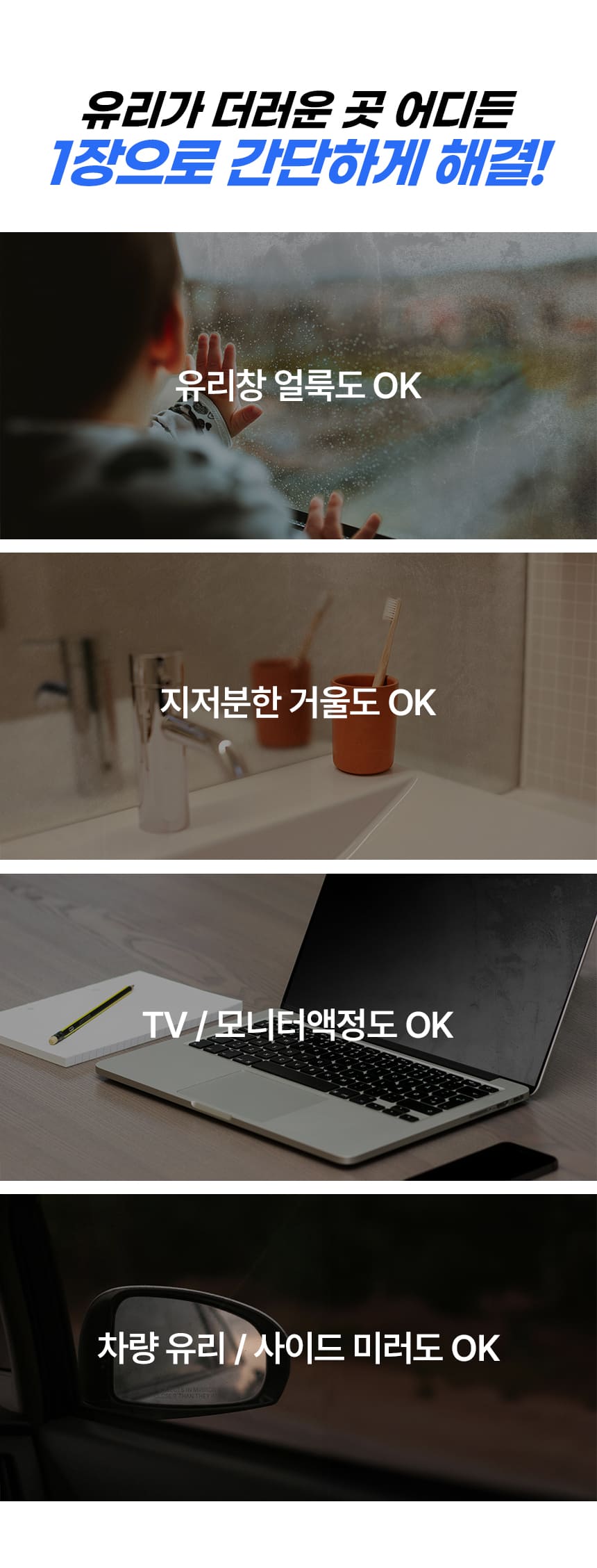 | 5. 효과·효능(승인대상 제품에 한함) | 유리 이물질, 얼룩 제거 및 세척 |