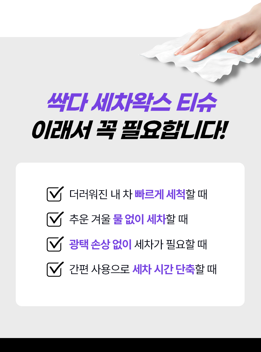 | 1. 품목 및 제품명 | 싹다 세차 왁스 티슈 |