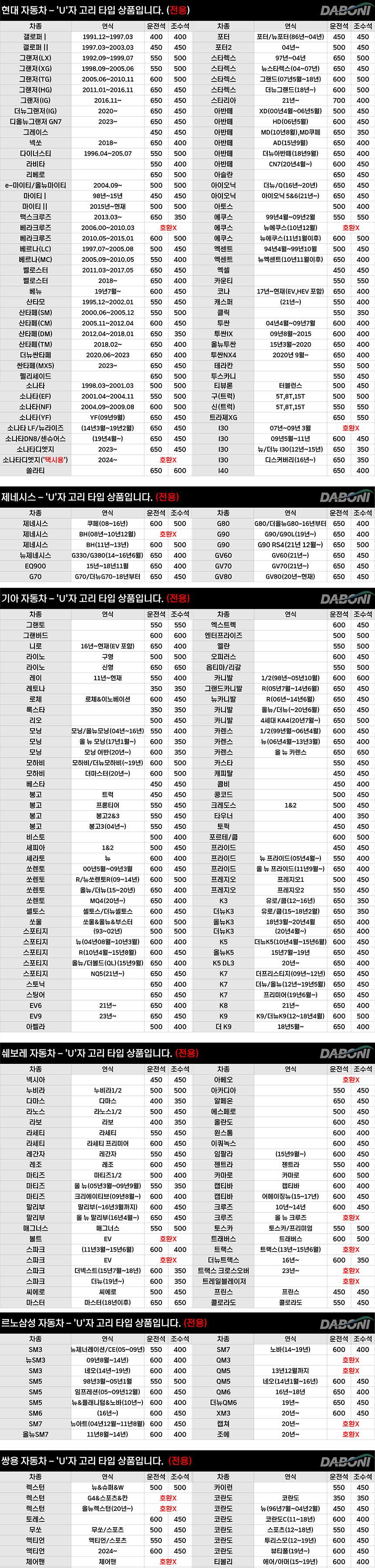 | 7. 적용차종 | 국산차 |