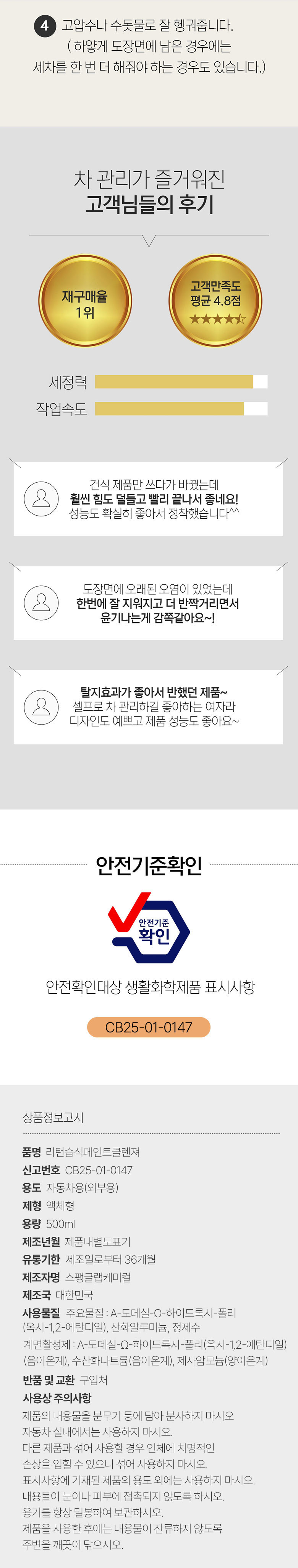 | 1. 품목 및 제품명 | 리턴 페인트클렌저 |