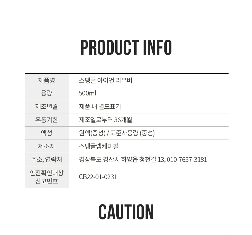 | 1. 품목 및 제품명 | 아이언 리무버 |