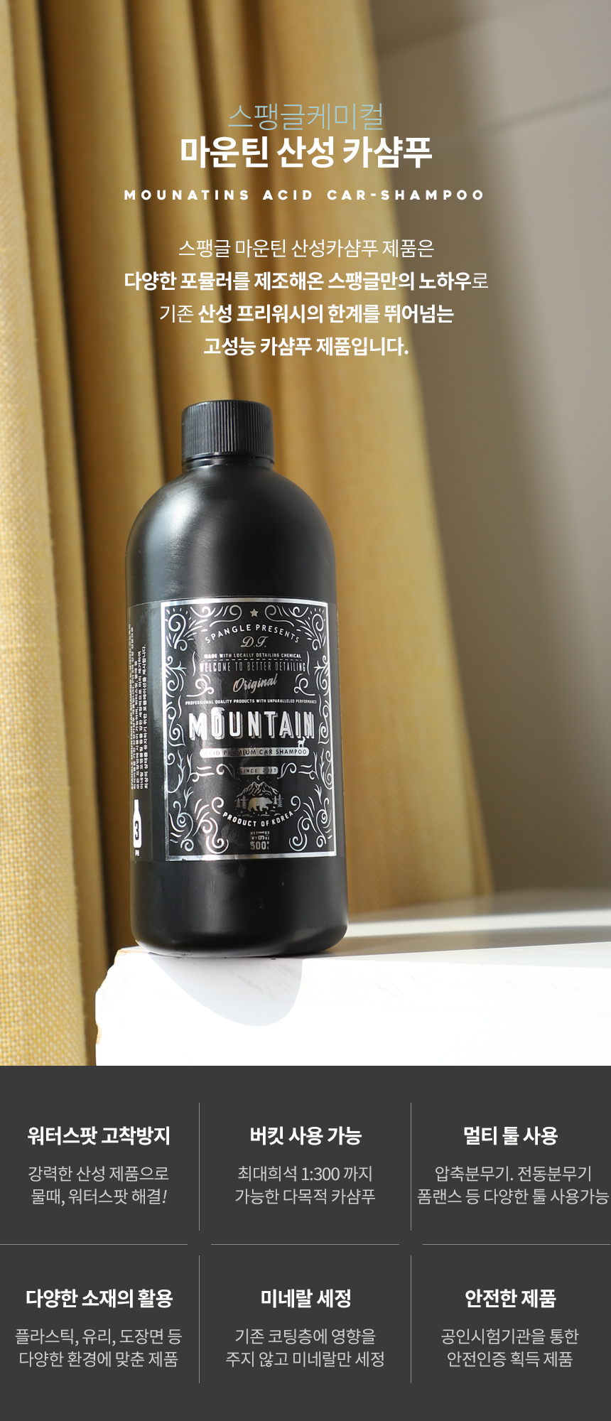 | 9. 사용상 주의사항 | [젠틀맨폼샴푸] 자동차 실내에서는 사용하지 마시오 피부가 민감하거나 손상된 사람은 제품을 장기간 접촉하지 않도록 주의하시오. 다른 제품과 섞어 사용할 경우 인체에 치명적인 손상을 입힐 수 있으니 섞어 사용하지 마시오. 표시사항에 기재된 제품의 용도 외에는 사용하지 마시오. 어린이보호포장이 적용되지 아니한 제품으로 어린이의 손이 닿지 않는 곳에 보관하시오. 내용물이 눈이나 피부에 접촉되지 않도록 하시오. 사람에게 직접 뿌리거나 분사되는 내용물을 흡입하지 마시오. [프리미엄카샴푸] 피부가 민감하거나 손상된 사람은 제품을 장기간 접촉하지 않도록 주의하시오 자동차 실내에서는 사용하지 마시오 표시사항에 기재된 제품의 용도 외에는 사용하지 마시오 다른 제품과 섞어 사용할 경우 인체에 치명적인 손상을 입힐 수 있으니 섞어 사용하지 마시오 제품의 내용물을 분무기 등에 담아 분사하지 마시오. 넘어진 채로 두면 액이 흘러나올 수 있으니 방치하지 마시오. 용기를 항상 밀봉하여 보관하시오. 직사광선을 피해 서늘한 곳에 보관하시오. [마운틴카샴푸] 피부가 민감하거나 손상된 사람은 제품을 장기간 접촉하지 않도록 주의하시오 어린이보호포장이 적용되지 아니한 제품으로 어린이의 손이 닿지 않는 곳에 보관하시오 자동차 실내에서는 사용하지 마시오 표시사항에 기재된 제품의 용도 외에는 사용하지 마시오 다른 제품과 섞어 사용할 경우 인체에 치명적인 손상을 입힐 수 있으니 섞어 사용하지 마시오. 넘어진 채로 두면 액이 흘러나올 수 있으니 방치하지 마시오. 용기를 항상 밀봉하여 보관하시오. |