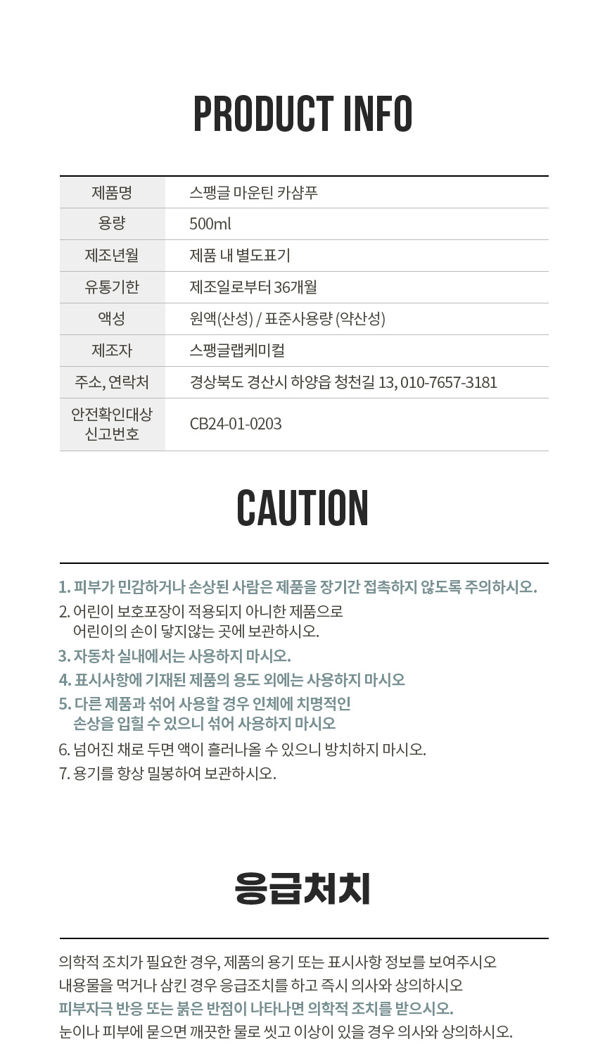 자세한 사항은 스팽글랩케미컬 고객센터로 연락주시기 바랍니다.