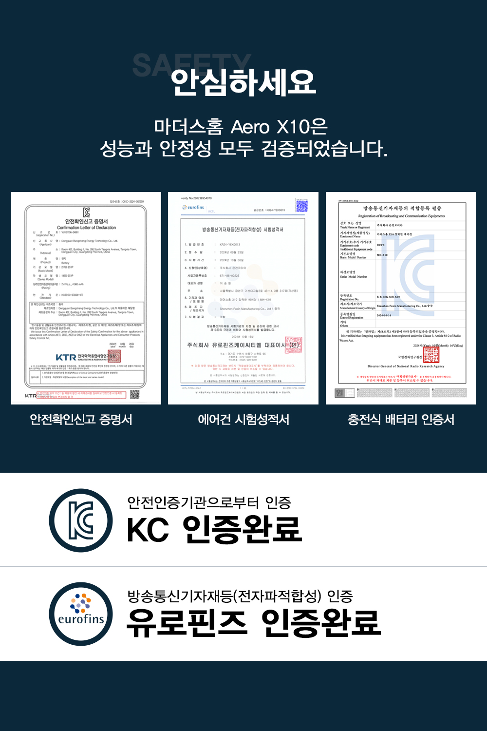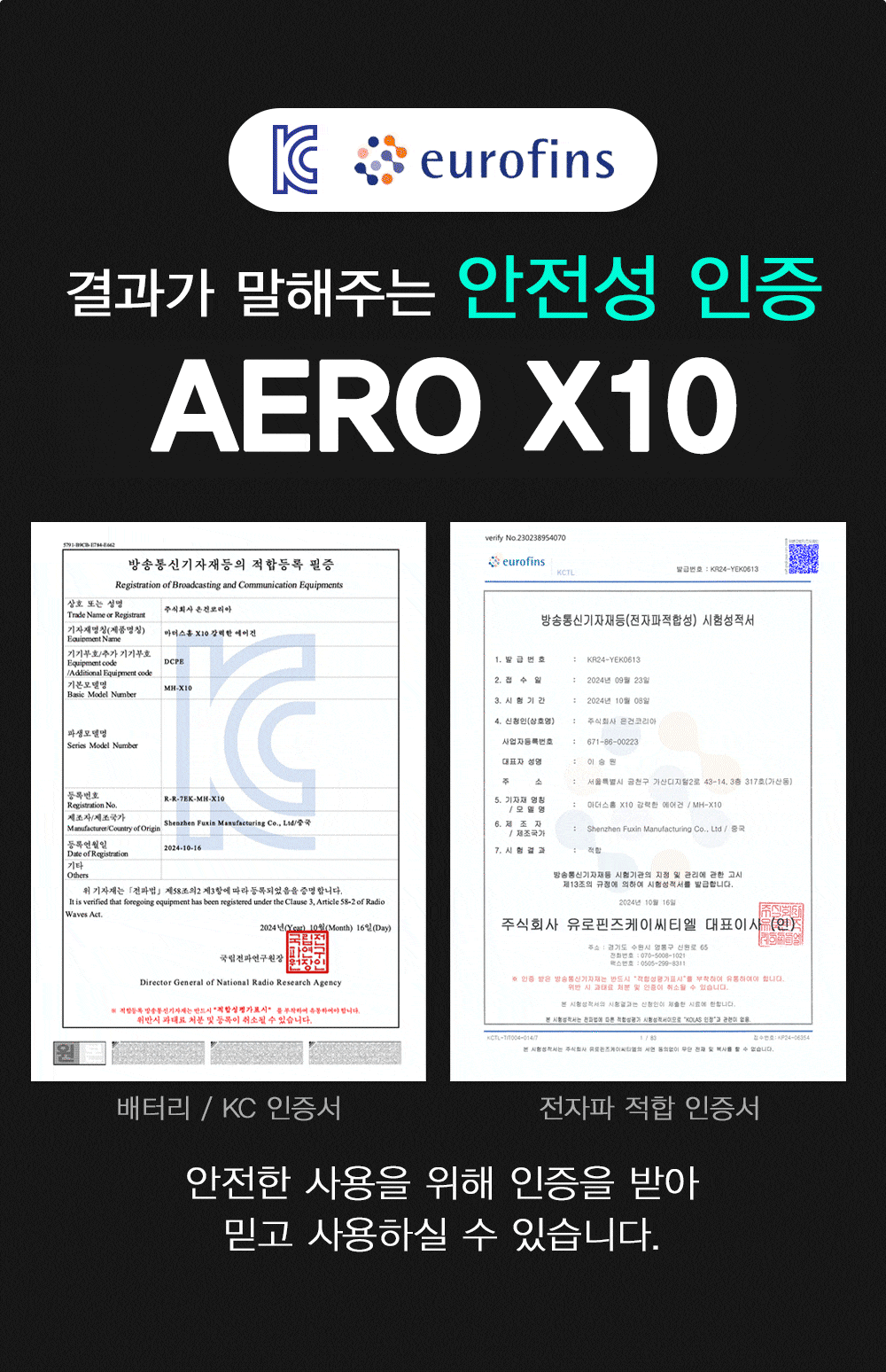 | 10. 검사합격증 번호(대기환경보전법에 따른 첨가제·촉매제에 한함) | 전파번인증번호 R-R-7EK-MH-X10 |