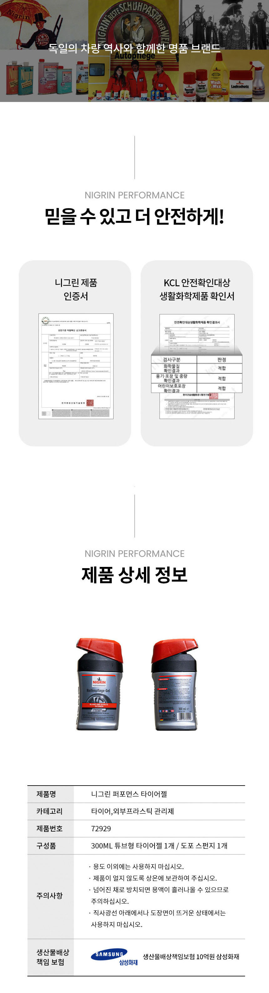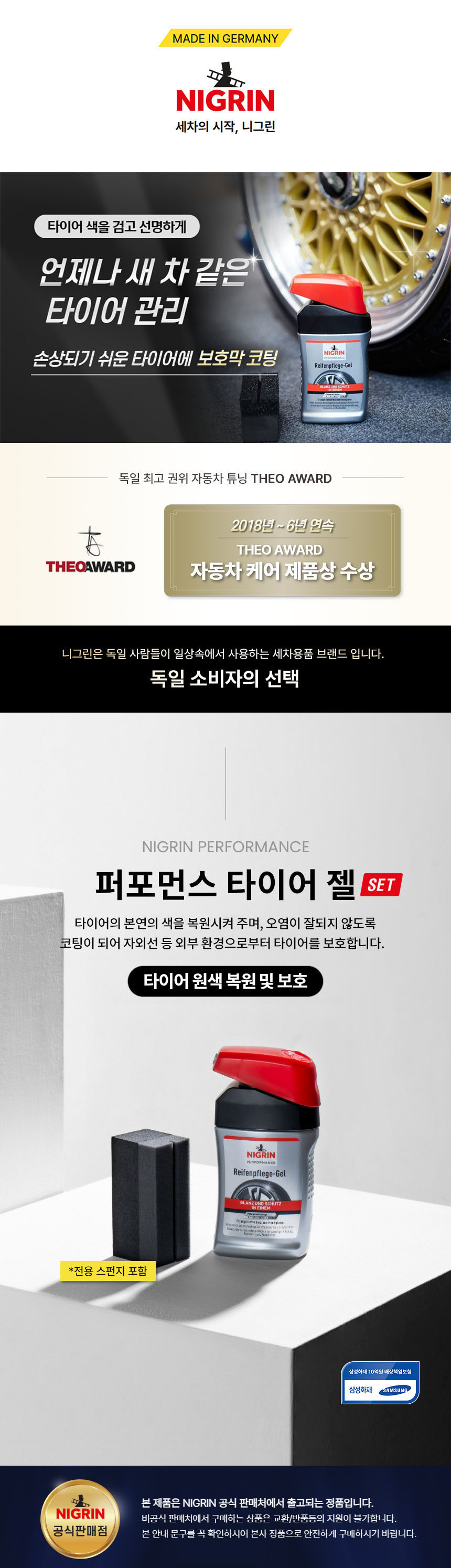| 1. 품목 및 제품명 | 니그린 퍼포먼스 타이어젤 세트 |