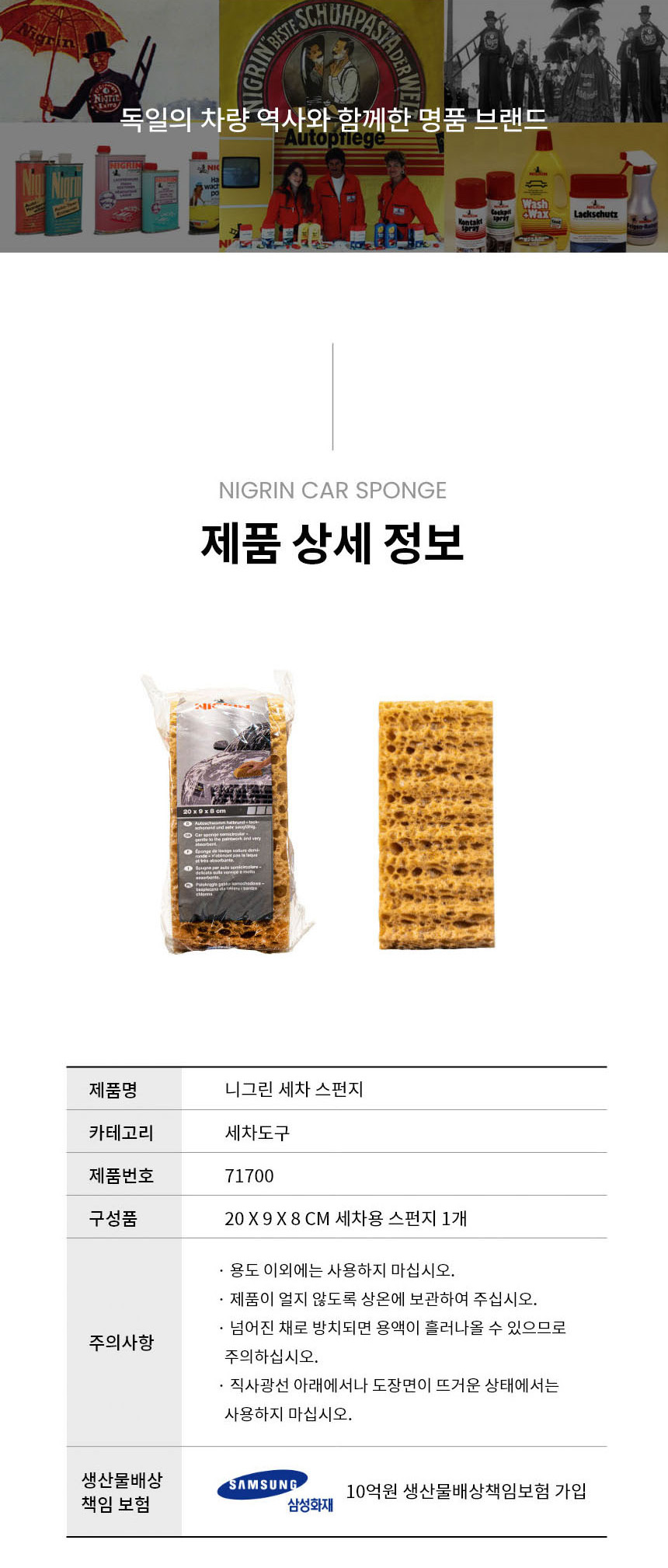 | 1. 품명 및 모델명 | 니그린 퍼포먼스 세차 스펀지 20cm |