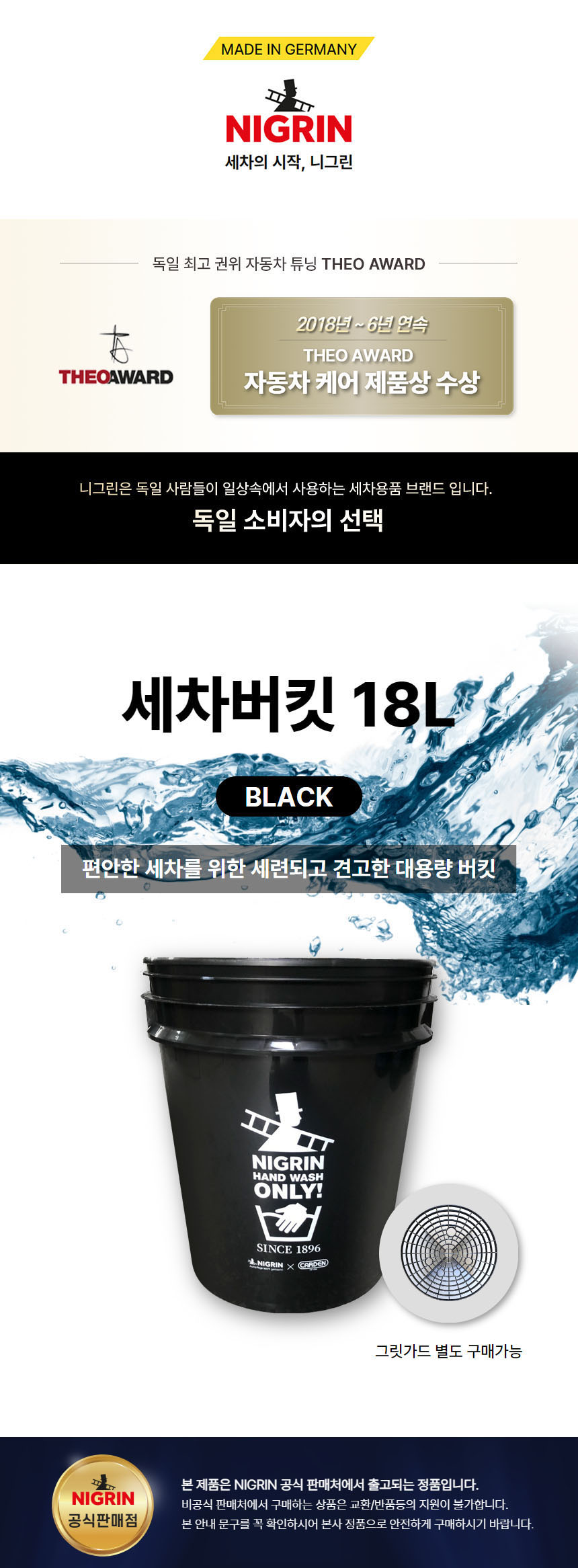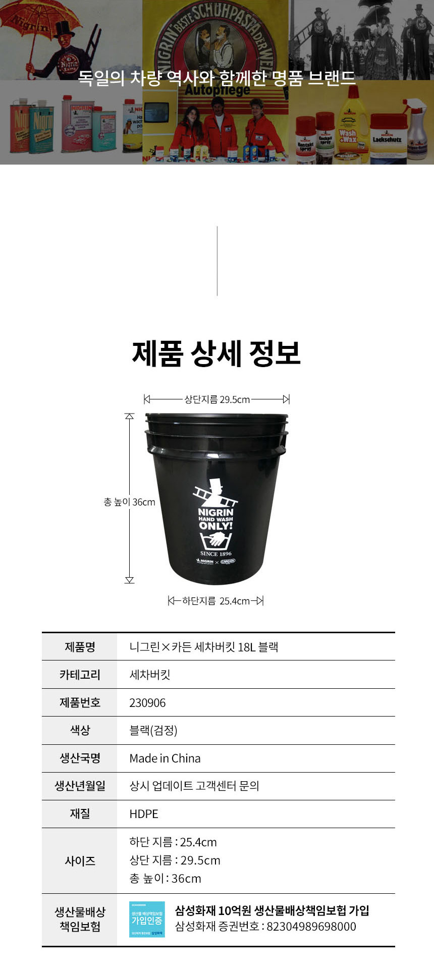 | 1. 품명 및 모델명 | 니그린x카든 세차버킷 18L |