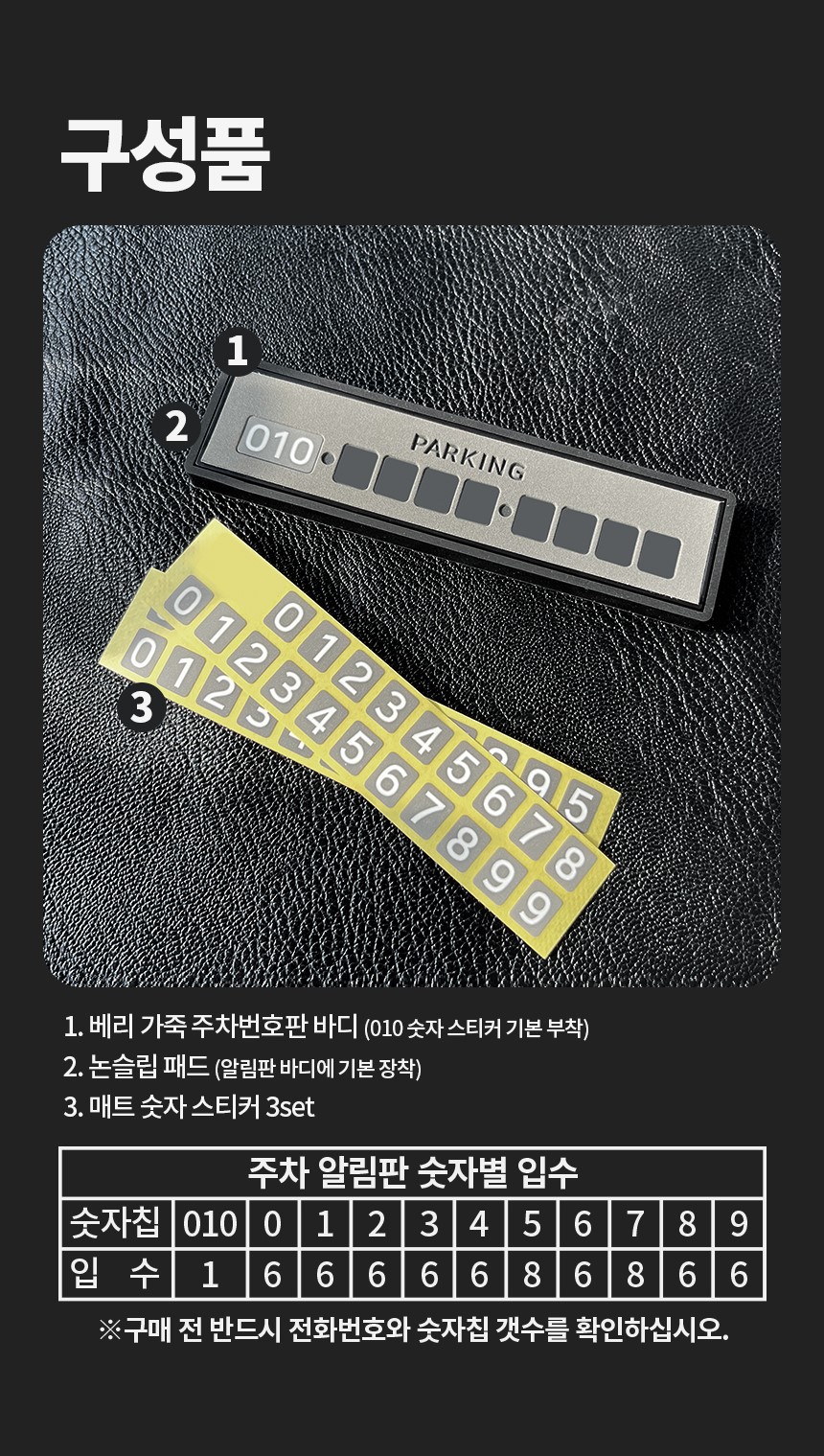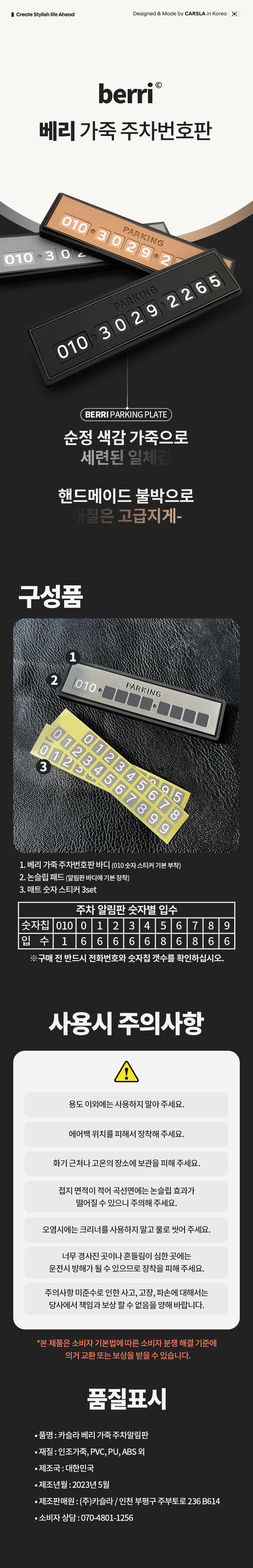 | 1. 품명 및 모델명 | 순정 가죽 베리 주차번호판 논슬립패드 차량연락처 자동차 전화번호 |