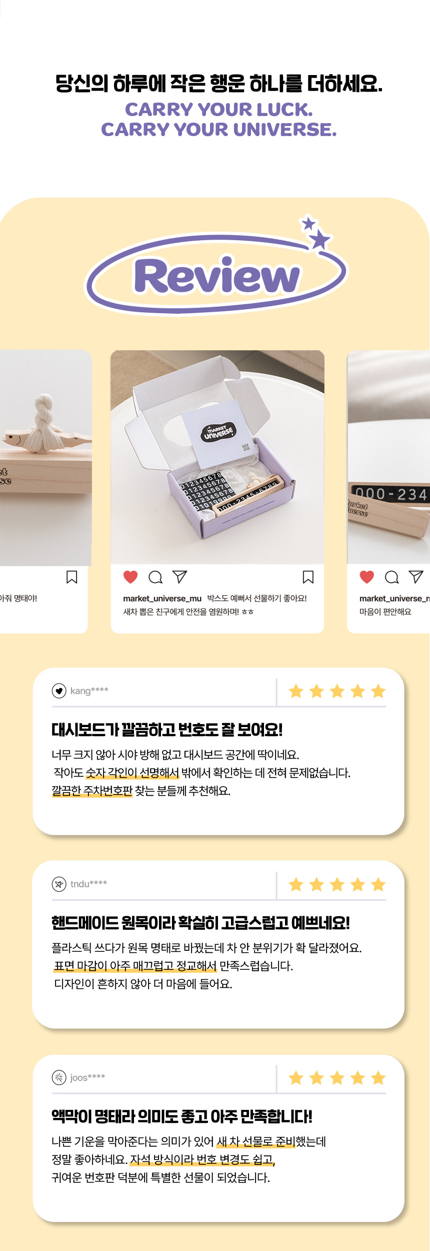 | 1. 품명 및 모델명 | 마켓유니버스 액막이명태 차량용 주차번호판 |