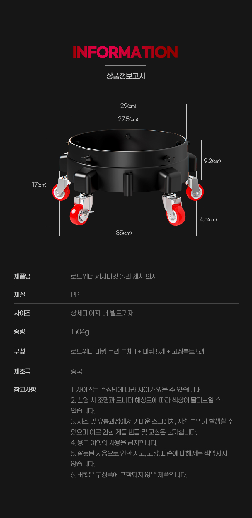 | 1. 품명 및 모델명 | 로드위너 세차버킷 돌리 세차 의자 |