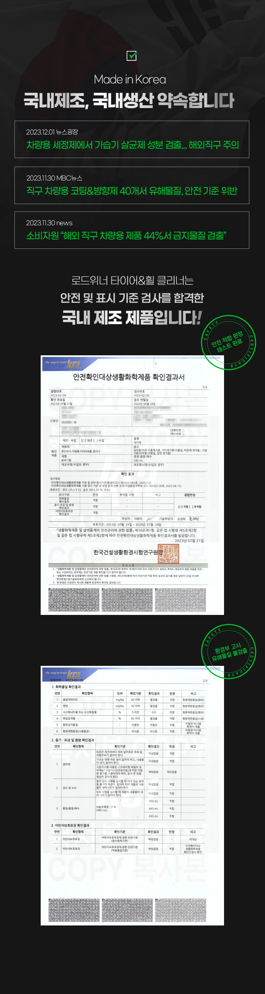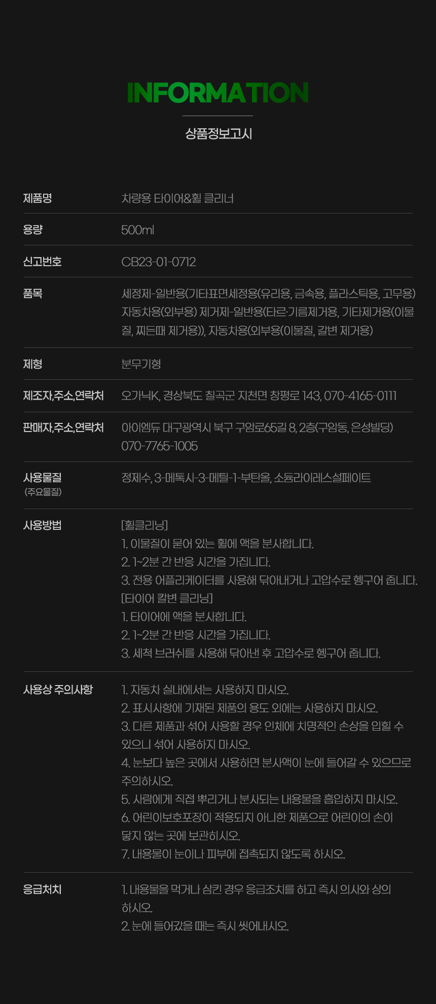 | 1. 품목 및 제품명 | 차량용 타이어&휠클리너 |