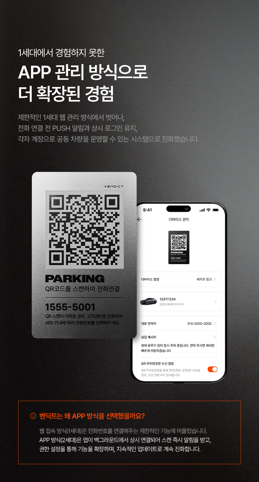 | 1. 품명 및 모델명 | 벤딕트 큐알 주차번호판 |