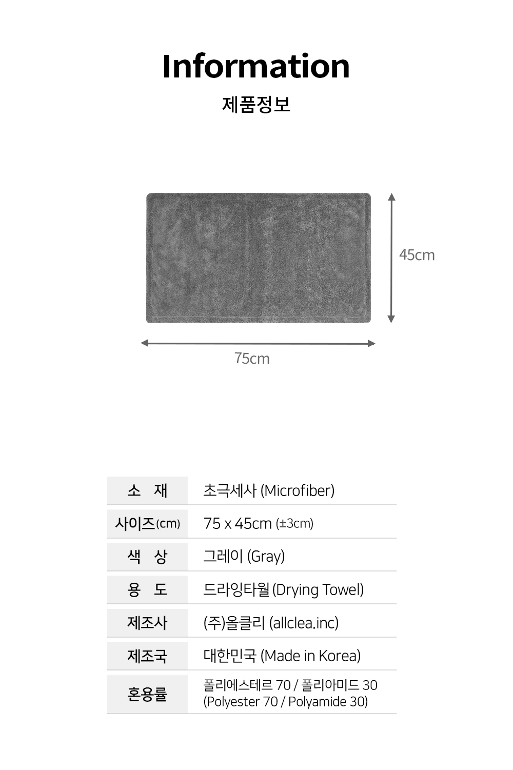 | 4. 제조자, 수입품의 경우 수입자를 함께 표기 (병행수입의 경우 병행수입 여부로 대체 가능) | (주)올클리 |