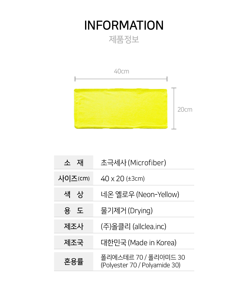 | 1. 품명 및 모델명 | 슈페리어 드라잉타월(소)(네온옐로우) |