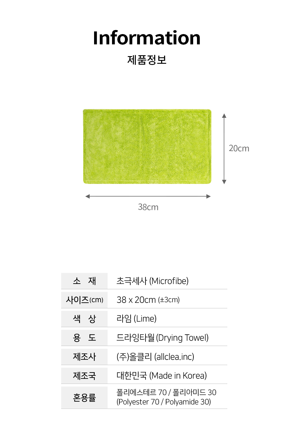 | 1. 품명 및 모델명 | 듀플렉스 드라잉타월(소)(라임) |